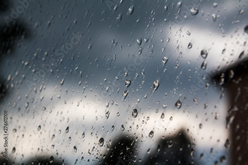 © Alina, Obraz premium drops of rain on the window and cloudy sky on the background