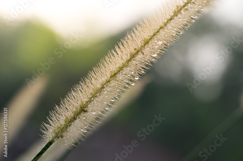 © Godscale, Naklejka premium Drops of water on Grass flower with nature background