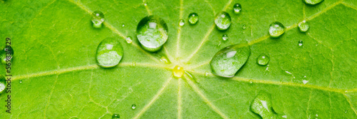 Fototapeta premium Drops of water pearl off a leaf with a lotus effect