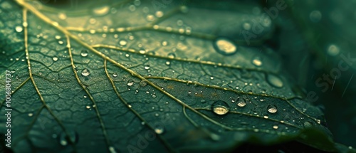 © PROKOPYCH, Fototapeta premium Drops on a leaf close-up. Macro. AI generative.