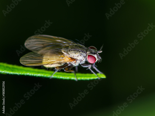 Fototapeta premium Drosophila Fruit Fly Diptera Insect on Green Leaf