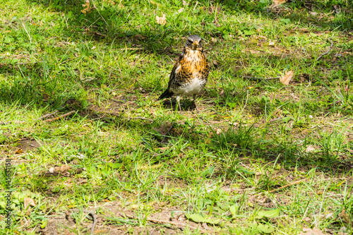 © pusteflower9024, Fototapeta premium Drossel auf Rasen