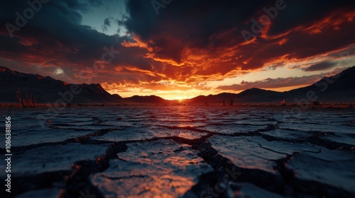 Fototapeta premium Drought Landscape Under Dramatic Sunset Sky