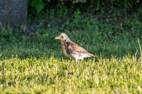 Fototapeta premium drozd śpiewak (Turdus philomelos) w trawie