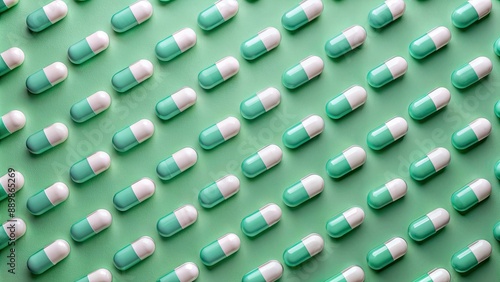 Fototapeta premium Drug pills arranged in a precise geometric pattern on a pastel green...