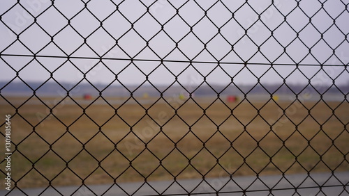 © Mateusz, Fototapeta premium Drut kolczasty na ogrodzeniu lotniska
