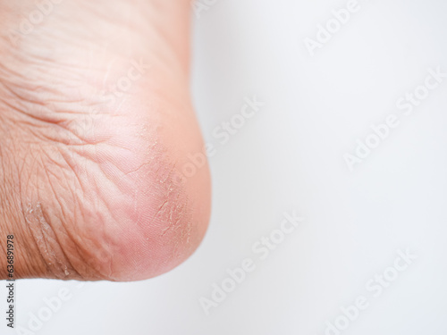 Fototapeta premium Dry and cracked soles of feet on a white background. cracked skins