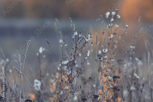Obraz premium Dry autumn grass in the field, autumn view background, nature