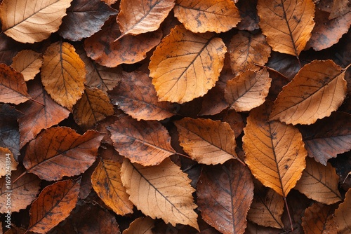 © Elizabeth, Obraz premium Dry autumn leaves texture in warm tones