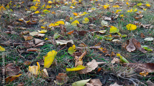 Obraz premium Dry autumn leaves yellow and brown colors.