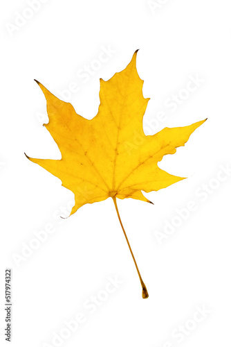 © Leka, Obraz premium dry autumn yellow maple leaf isolate on white background