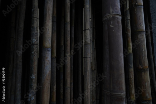 Fototapeta premium Dry Bamboo Poles Standing Neatly in a Row or Stack