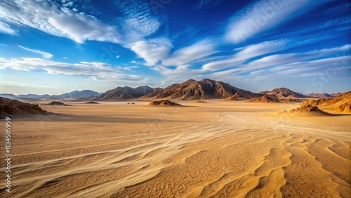 © Nasnunt, Fototapeta premium Dry, barren sandy landscape in the Egyptian desert, Egypt, sand, stone, arid, barren, desolate, hot, wilderness, remote