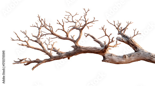 © Nawab stock, Obraz premium Dry branch from towering dead tree with eerie detail, isolated on white background