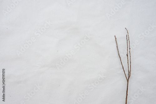 © nathiyai, Obraz premium Dry branches on white muslin fabric with copy space from top view
