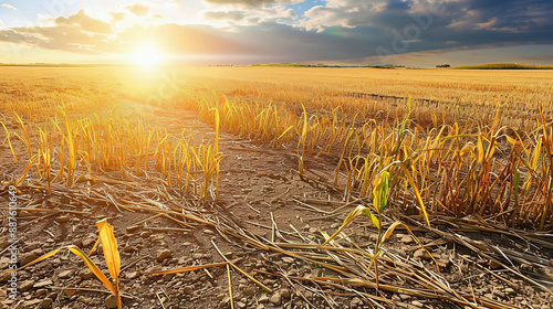 © Volodymyr Shcherbak, Fototapeta premium Dry corn field ready after harvest