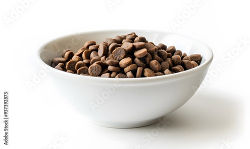 Obraz premium Dry dog food in a bowl on a white background.