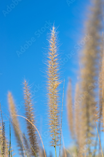 © Natalya, Fototapeta premium Dry grass across clear blie sky, selective focus