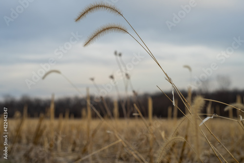 © Eric Skadson, Fototapeta premium Dry grass blows in the wind over a golden field