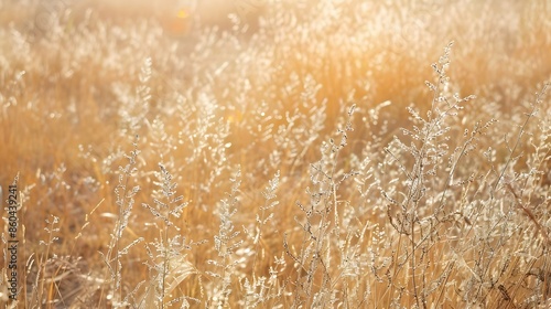 Fototapeta premium Dry grass field bathed in summer sunlight. Concept of warm, natural scenery.