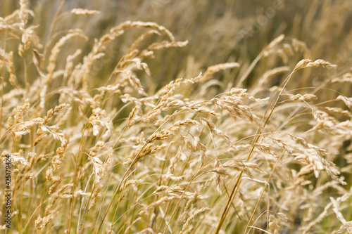 Fototapeta premium Dry grass golden color long stalk, background nature grass in riverside