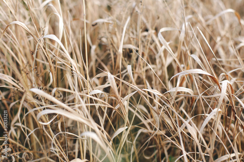 Fototapeta premium Dry grass grows on the mountain.