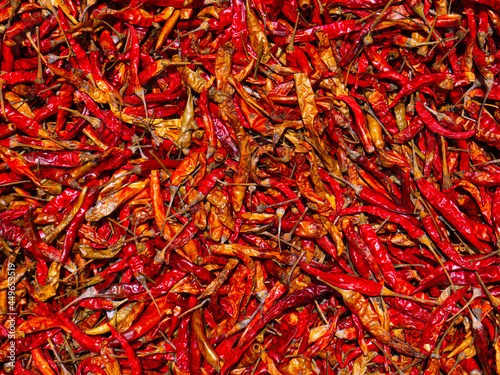 © khak, Fototapeta premium Dry hot chillis background.