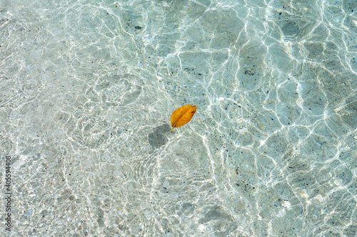 Naklejka premium Dry leaf floating on clear sea water abstract