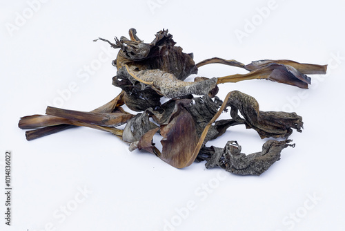 © Semoga, Fototapeta premium Dry leaves, old dead leaves isolated white background, Dry / dead banana leaves