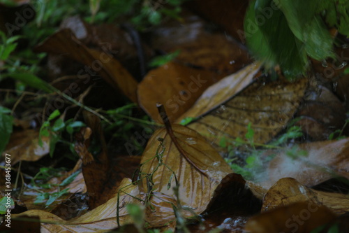 Obraz premium Dry leaves on the ground.