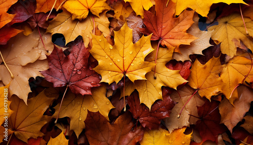 Fototapeta premium Dry maple leaves autumnal background , generative AI