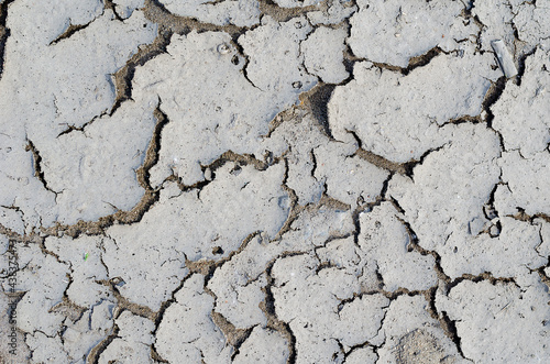 © Mikhail, Fototapeta premium Dry Mud Texture. Gray cracked soil after a drought.