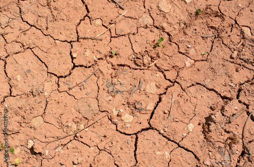© Irina, Fototapeta premium Dry red Earth Surface Texture with cracks flat lay