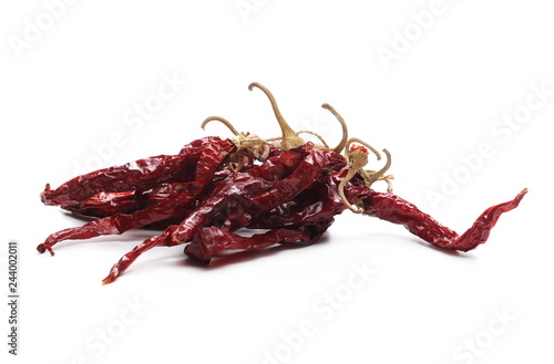 © dule964, Fototapeta premium Dry red, spicy peppers, pile isolated on white background