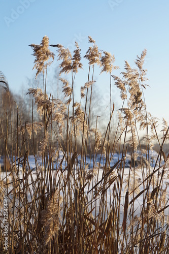 © Ольга Козырькова, Obraz premium dry reed on winter lake on a clear day
