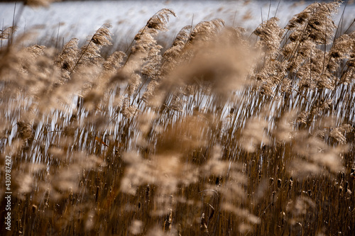 © Rolands, Fototapeta premium dry reeds sway in the wind by the lake