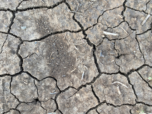 Fototapeta premium dry riverbed river bottom with cracked mud cracking muddy dirt