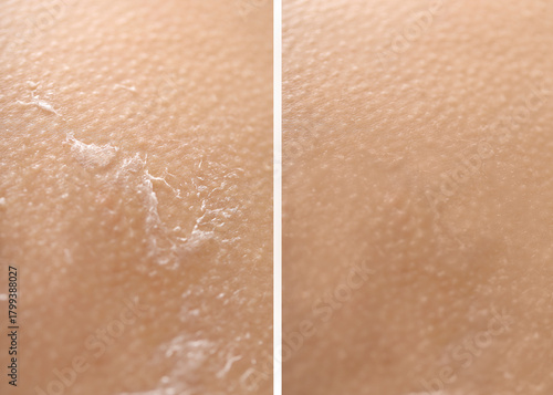 © New Africa, Fototapeta premium Dry skin before and after moisturizing, marco view. Collage for comparison