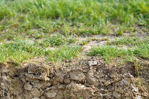 Obraz premium Dry soil texture below grass