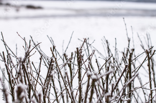 Fototapeta premium Dry tree branches with snow.