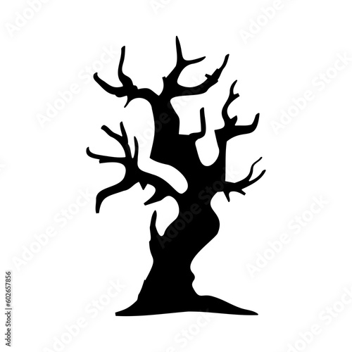 Fototapeta premium dry tree silhouette Ghost tree with scary devil face for Halloween card decoration