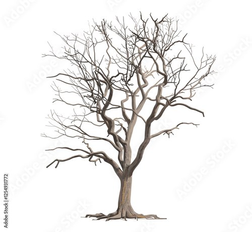 Obraz premium Dry tree, vector illustration, leafless tree, cut-out background, barren branches, isolated tree design, nature silhouette, minimalist tree art, environment concept, eco design