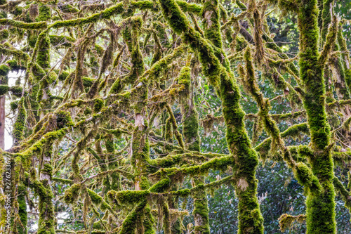 Fototapeta premium Dry trunks and branches of trees, completely covered with moss.