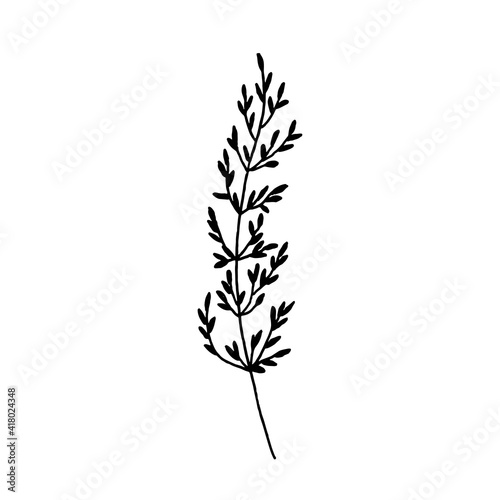 © Natspace, Naklejka premium Dry winter twigs, flowers and berries. Black and white sketch. Hand drawn vector illustration.