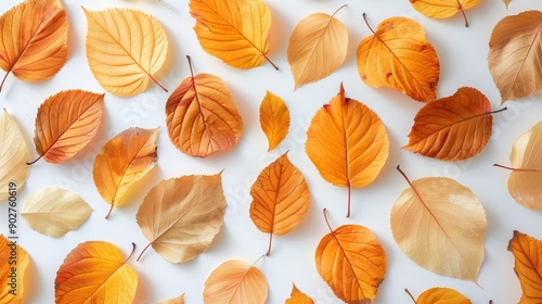 Fototapeta premium Dry Yellow and Orange Leaves on White Background Showing Autumn Foliage