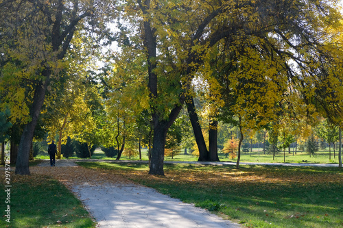 Fototapeta premium Drzewa z jesiennych liści w krajobrazie parku