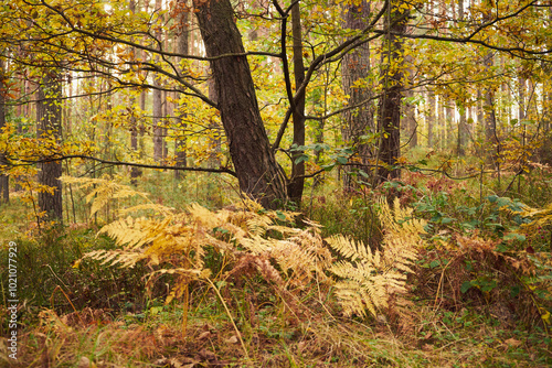 © Marcin Łazarczyk, Fototapeta premium drzewo,paprocie,las