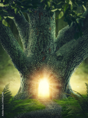 © Elena Schweitzer, Fototapeta premium Drzewo z bramą