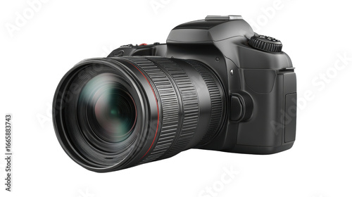Fototapeta premium DSLR camera with a zoom lens on a white isolate background.