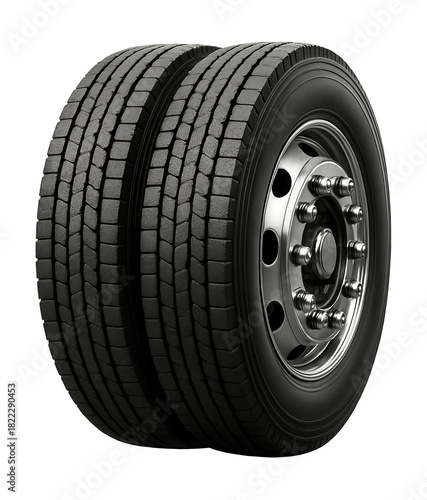 © OMD, Obraz premium Dual bus wheel featuring noticeable nuts and a textured tire design.